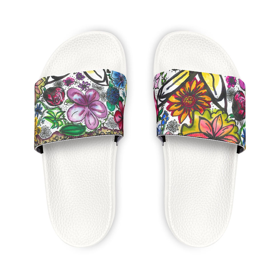 Youth Slide Sandals — Red Floral Removable-Strap Slides